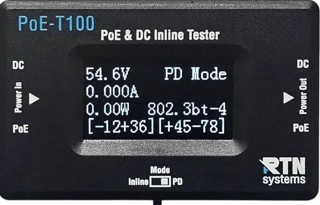 Bright OLED Display: Featuring a clear, easy-to-read OLED screen, network tester ethernet shows real-time power, voltage, and current measurements on a single page. Instantly identify PSE type, power levels, and inline power usage for quick and efficient diagnostics.