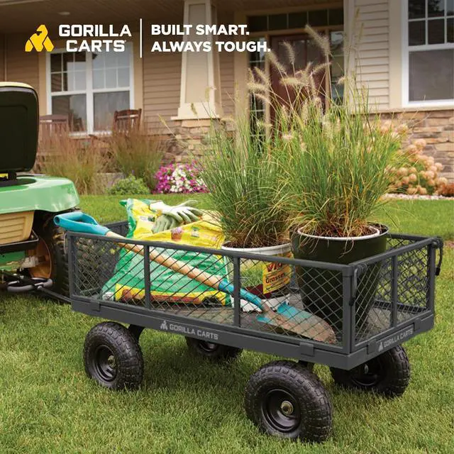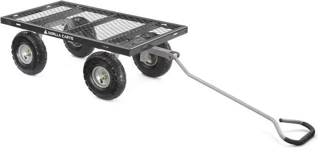 All-Terrain Tires: Four 10-inch pneumatic tires roll easily over dirt, gravel, grass, and pavement, keeping projects moving quickly without unnecessary delays