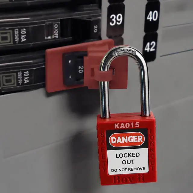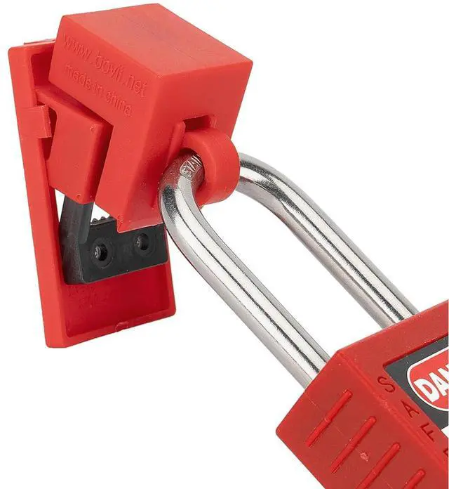 12Pcs Red Clamp-On StyleBreaker LockoutsFit single pole breaker with up to 5/8" wide and 1/2" thick toggles. Lock hole diameter is 19/64-inch.