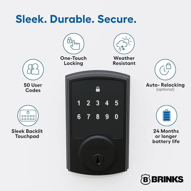 • Sleek Design with Keyless Entry: Enjoy easy, keyless access with the backlit touchpad no keys needed for effortless entry day or night.