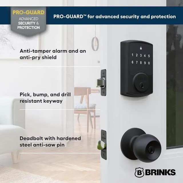 • Advanced Security with PRO-GUARD Technology: Anti-tamper alarm, anti-pry shield, pick-resistant keyway, and 1-inch deadbolt with a hardened steel anti-saw pin for maximum protection.