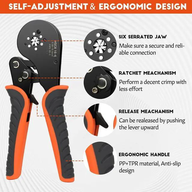 PREMIUM HEXAGONAL CRIMP PROFILEFeaturing six precision-serrated crimp surfaces, powered by six synchronously driven crimp jaws, this tool ensures a strong, reliable connection between wires for maximum durability and safety. Step1Prepare the wire and terminals for
