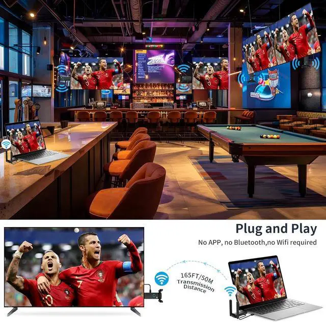 Plug-and-Play: No complicated setup required. Just plug the transmitter into your playback device and the receiver into your display for instant, wireless connectivity. Create your personalized audio-visual experience in your home theater, conference room, or gaming space.