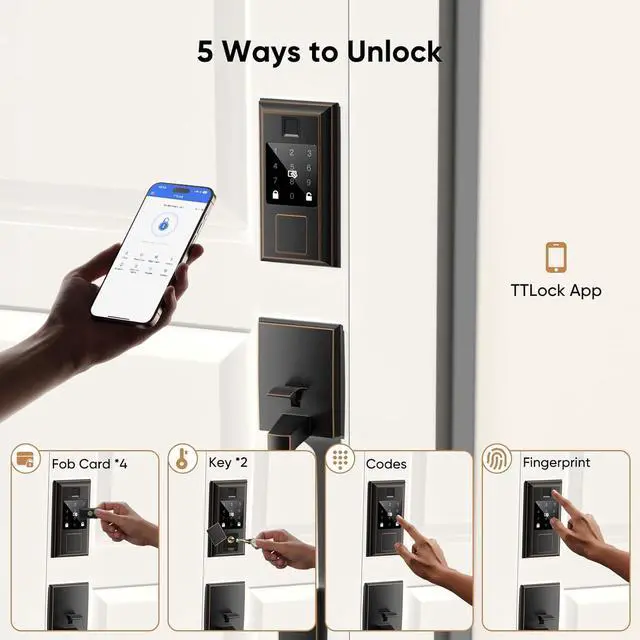 Customizable Access for Every Need - Easily set and share Timed, One-time, Permanent, Scheduled, Custom, or Recurring passcodes for guests, delivery personnel, or service providers. The keypad door lock supports random digits before or after the correct code to prevent others from guessing your code. This smart lock offer flexible access control for every situation.