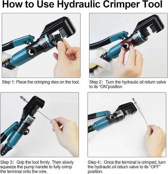 Easy to UseOn/Off control for fast operation, easy crimping and arm retraction when crimping aluminum or copper wire. C-shaped pressing head for easy insertation of the crimping dies and for the easy positioning of the cable, head rotates 180°. Dies can be used at multiple angles for easy crimping in any direction. Vinyl-dipped grip for comfort and control.