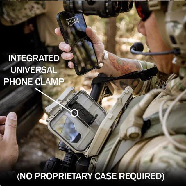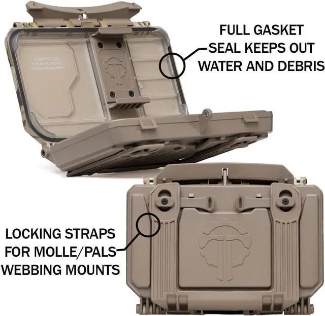 DarkVault Critical Gear Cases protect important gear like cell phones, navigation equipment, and other tools from impact, dust, and water, while keeping them accessible on MOLLE/PALS webbing. The DarkVault Comms 2.0 Critical Gear Case is purpose-built for smartphone use. It has a clear window to allow phone cameras to view the environment, once snapped into a spring-loaded mount. The DarkVault Comms 2.0 comes in two sizes, to fit a wide range of cell phones.