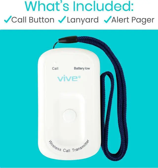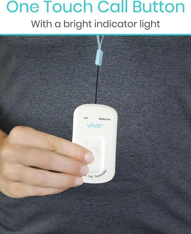 COMPACT DESIGN: Keep the call button close at hand by easily slipping the compact button transmitter into a pocket, set on a bedside table or hang on the included 17 lanyard.