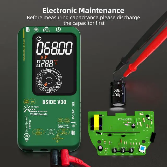 Smart Mode: digital multimeter tester can automatically measure ac voltage, dc voltage, resistance and continuity with the best solution. All of this functions measurement can be done manually as well.