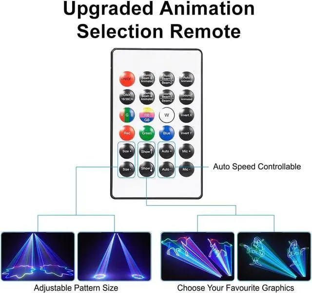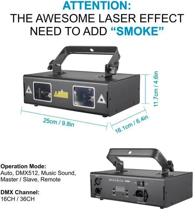Remote, Music Sound & DMX ControlOperation modes with Auto, DMX512, Music sound, Master / Slave and Remote control. 16 / 36 DMX channels with the functions of movement, rotation, zoom, color change and speed all can be adjustable. Perfect for stage & dj lighting, disco club bar party wedding family gathering lights.