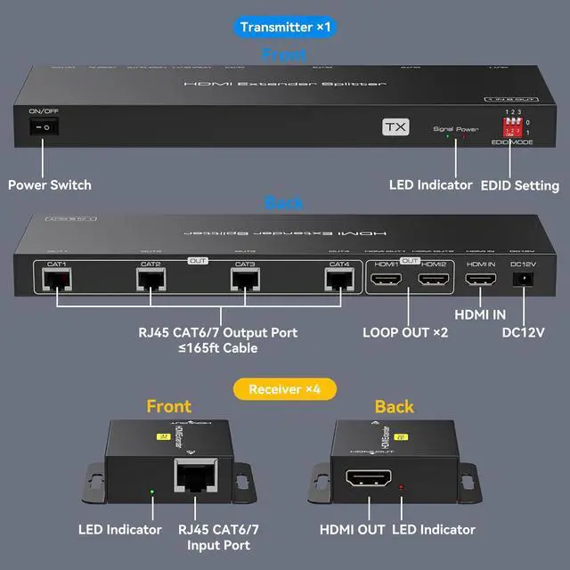 Support EDID ManagementAccording to different application requirements, the TX supports a variety of EDID preset programs to improve the compatibility of the equipment, which can better match the signal source and display to get the most suitable video and audio signal