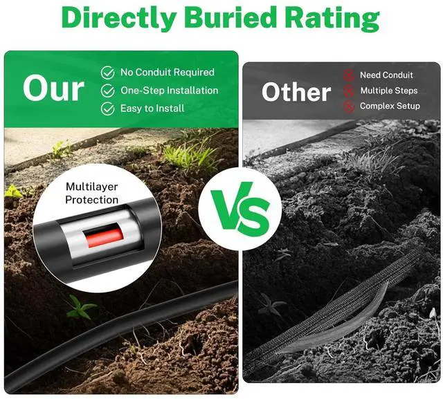 Pure Copper & Shielded ProtectionThis Outdoor Speaker Wire features pure copper conductors for excellent sound quality, a shielding layer to reduce interference, and a durable PVC outer sheath for weather resistance, ensuring long-lasting performance in outdoor settings. Direct BurialOur Outdoor Speaker Wire is designed for direct burial, ensuring safe and reliable installation underground. With strong weatherproofing and durable construction, it delivers long-lasting performance in any outdoor environment.