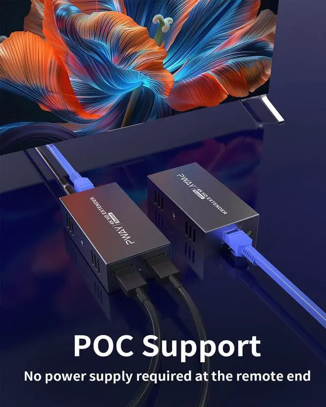 POC FunctionPower Over Cable technology requires only transmitter-side power - eliminates the need for power outlets at the display end, ideal for ceiling projectors and digital signage.