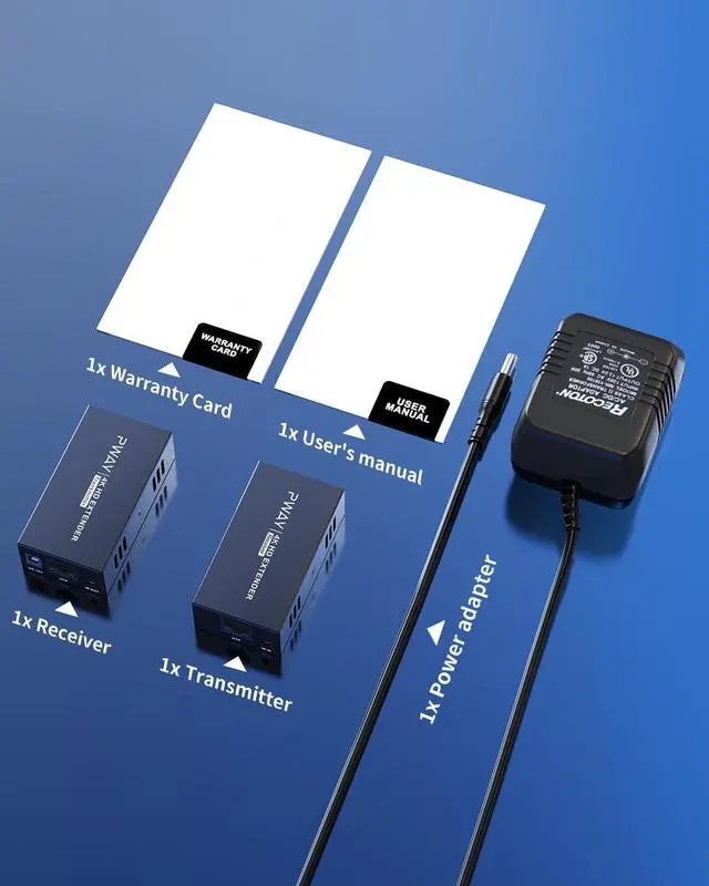 Includes1x HDMI Transmitter, 1x HDMI Receiver, 1x 12V1A DC Power Supply Adaptor, 1x Product Manual.