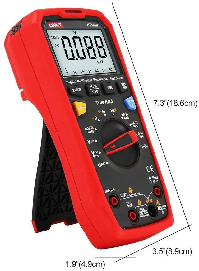UT161B is safety rated CAT III 1000V/CAT IV 600V.