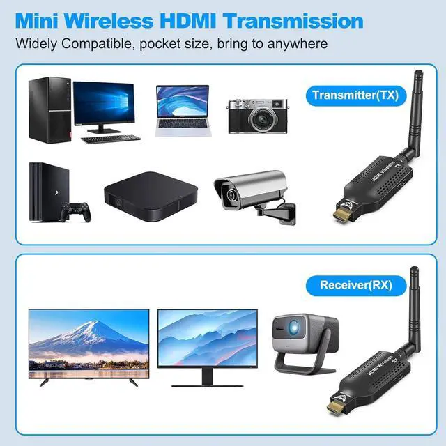 Wide Device Compatibility: Compatible with a variety of devices including televisions, set-top boxes, cameras, laptops, game consoles, DVD and Blu-ray players, this wireless and projector transmitter and receiver meet your connectivity needs