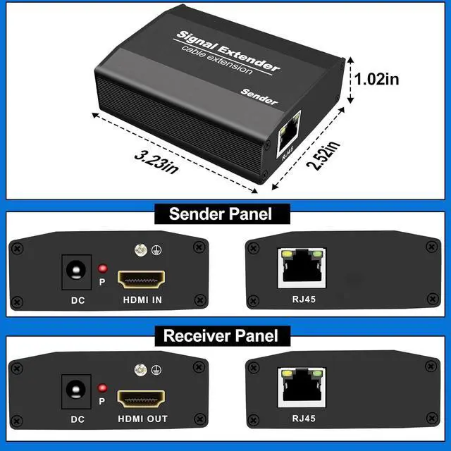 1080P HDMI Extender over 558FT (170M) This plug & play HDMI extender help you transmit high-resolution HDMI signal up to 558ft/170M through a standard CAT5E/6/7 cable.