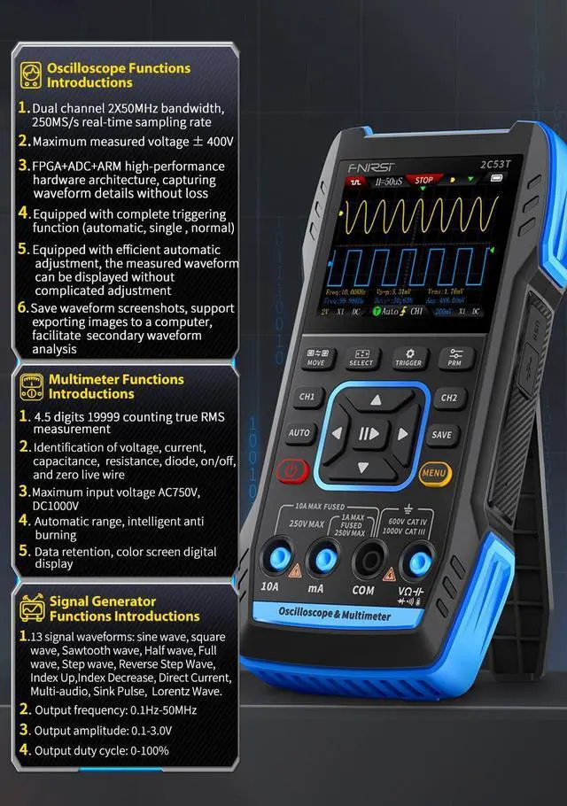 2C53T ISPOWERED BY FNIRSI AND IS THE LATEST AND MOST ADVANCED NON-TOUCH -SCREEN OSCILLOSCOPEAMONG FNIRSI FAMILY
