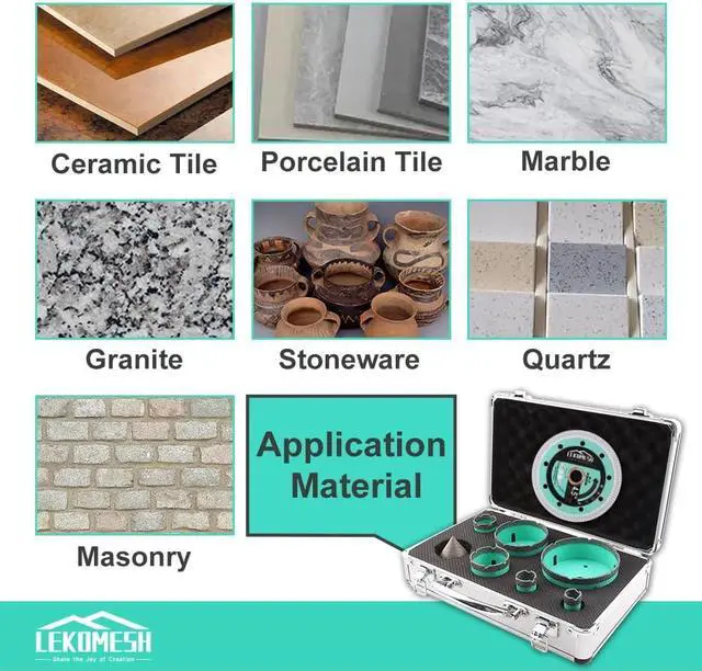 • TECHNOLOGYThis tiling installation kit is made of high quality diamond and steel by vacuum brazed diamond technology. Provide very high efficiency, drilling and milling faster, durable and sturdy.