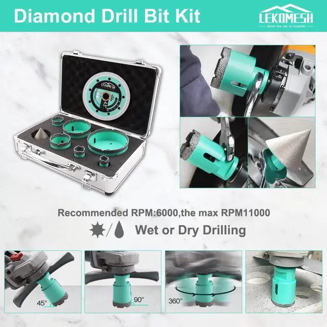 FEATURESDrilling box: fast and smooth drilling, long lifetime, less chipping. Recommended RPM is 6000; Maximum RPM is 11000, Widely used in Angle Grinder, if you want used on hand drill, bench drill, you can use the adapter included in the box; Cutting disc suitable for circular saw and angle grinder.