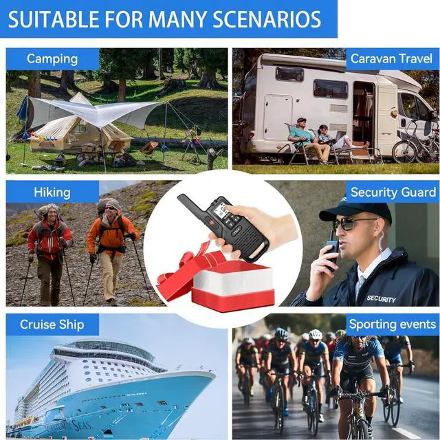 Maintain at least 2 inchesbetween the compass and magnets for optimal performance. IP54 waterproof walkie talkies long rangeIP54 waterproof, The walkie talkie long range for camping is designed for harsh outdoor environments with IP54 level dustproof, waterproof and showerproof function, so you can use walkie talkies in any weather conditions without worrying about damage. The two way radio is made of ABS PC fabric shell, while the headphone hole and charging port are hidden under the well-sealed dust plug. The long range walkie talkies can easily cope with the environment, whether it is in the wind, rain or sand.
