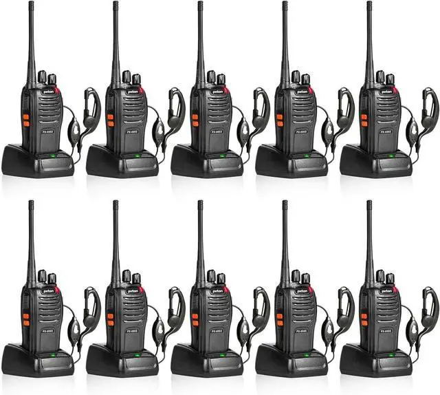 What's in the Box: You get 10 x walkie-talkies, 10 x charging docks, 10 x 1500mAh lithium batteries, 10 x belt clips, 10 x earphones, and 5 x user manual.