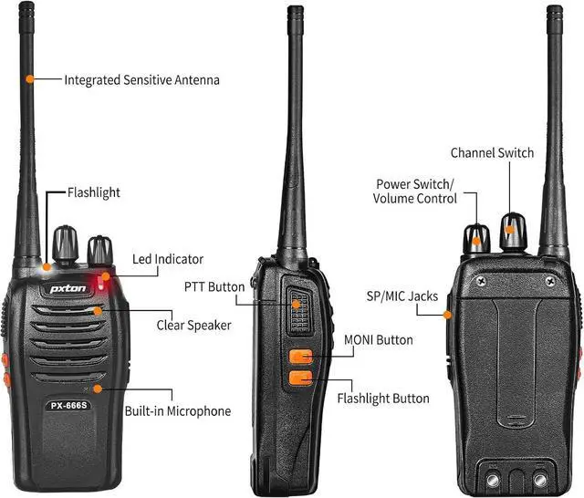 Note: The PX-666S walkie talkie buddies up with PX-888S, PX-777S, and PX-888S Pro models. They can team up and use the same programming tools and cables. (the programming cable needs to be purchased separately and is not included)