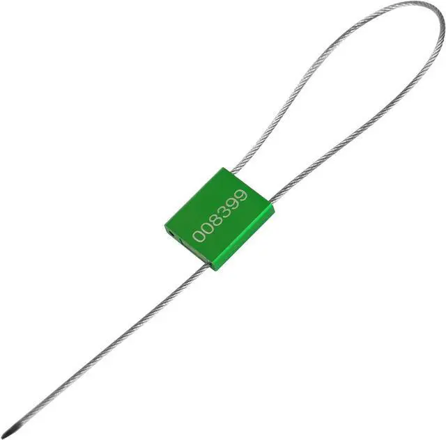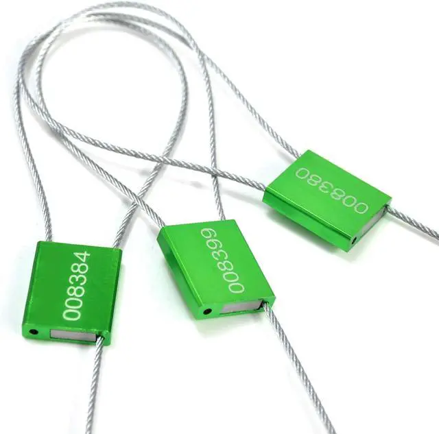 100pcs Numbered Security Steel Cable Seals, Metal Container Seals Aluminum Pull Tight Adjustable Cable, Shipping Label Metal Tags, for Logistics, Truck, Trailer, Cargo Shipping (Green, 100pcs)