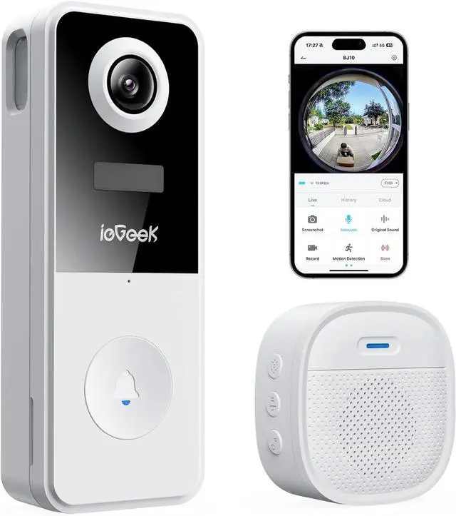 [PIR Motion Detection & Real-time Alert]: The smart doorbell with camera features a patented motion detector with a monitoring range of up to 20ft. When motion is detected, it will send a notification to your phone in 3s and record footage of visitors who approach your door. You can choose to talk to visitors or turn on the alarm to warn uninvited guests.