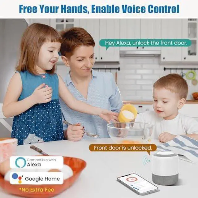 Security and Durability-The G3 smart digital combination door lock have a low battery alerts and incorrect entry restrictions funtions. G3 Wi-Fi smart deadbolt features a sleek morden design with rubber gaskets serving as moisture barriers, complementing most front doors seamlessly. IP54 waterproof, this keyless entry lock withstands extreme temperatures from 5°F to 122°F. Powered by 8 AA batteries (not included), the WiFi door lock operates for approximately 8 months.
