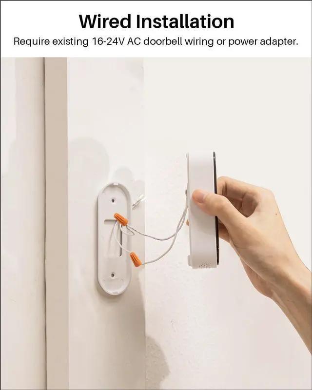Can this video doorbell be installed with no existing doorbell wiring? Wired Video Doorbell has to be wired to a 16-24V AC doorbell transformer. If you don't have an existing doorbell system, we recommend that you get a power adapter. You can search the keywords "adapter for wired doorbell" for a 16-24V AC adapter.
