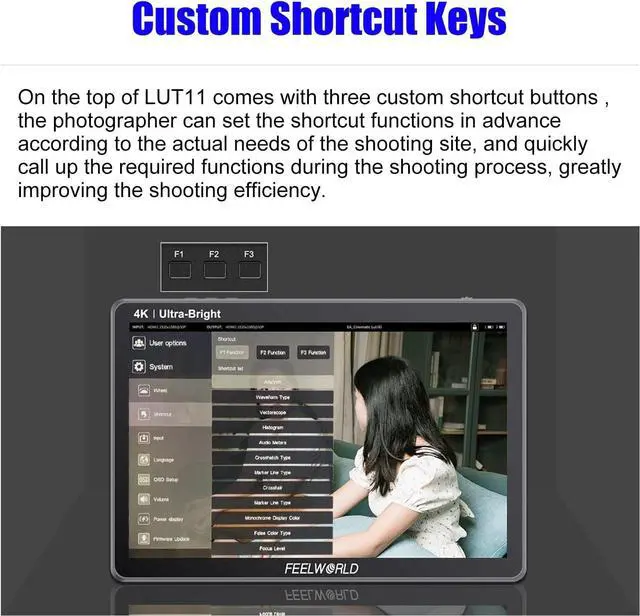 On the top of LUT11 is three custom shortcut buttons, you can set the shortcut functions in advance.