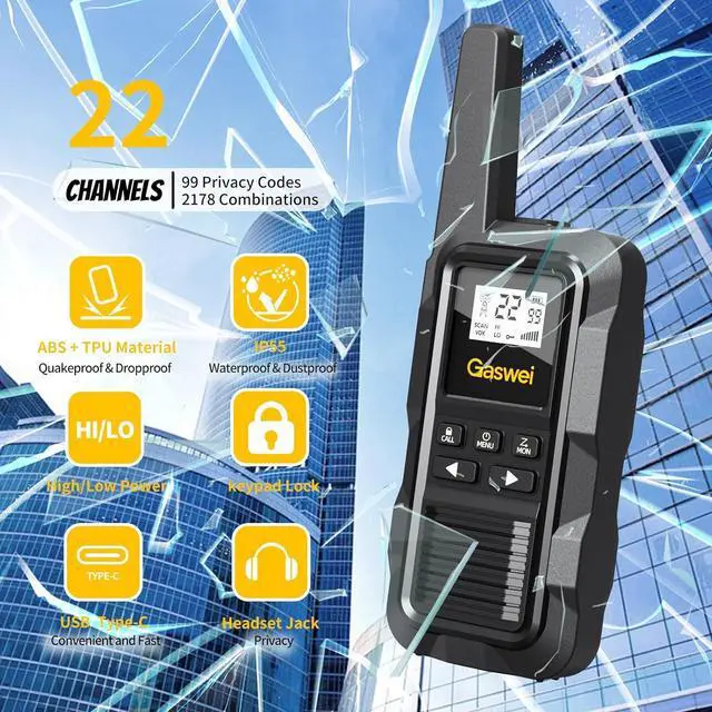 What's in the box? Two G2pro walkie-talkies with two-way radios, two lithium polymer batteries (included in the product), one USB-C charging cable, user guide.
