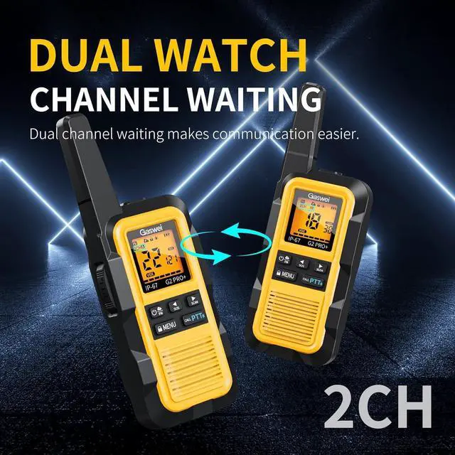 multifunctionalFM radio for quick access to your favorite FM bands ( 87.5H z- 108.0H z). The VOX function (easy voice and sound-activated transmission) offers nine sensitivity levels for hands-free operation while moving. Whisper mode enables transmission of loud volume even when speaking softly. Adjustable high and low power settings. SOS transmission alert. Vibration reminders. Quiet charging. Power-saving settings. Keypad lock. Memory channel scanning. The G2pro+ heavy-duty walkie-talkie boasts a wide range of powerful features.