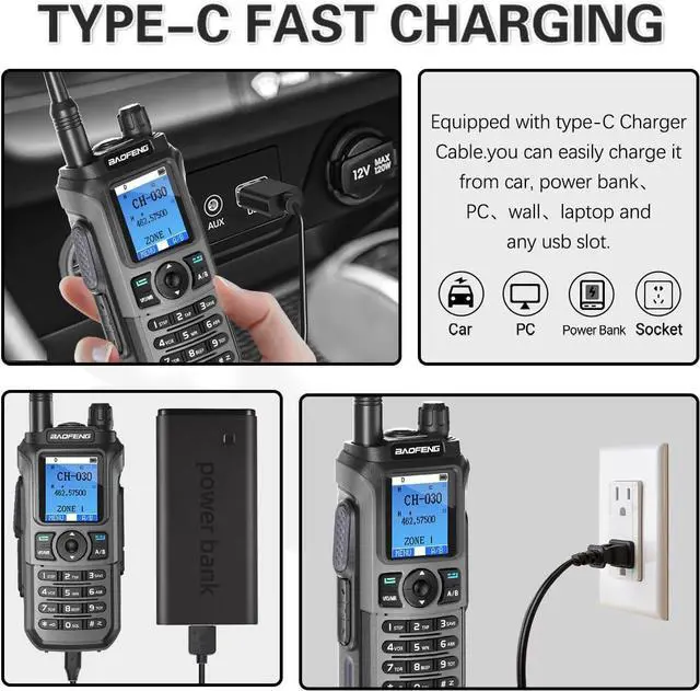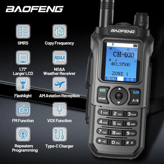 Professional GMRS Radio: Multifunctional use, up to 999Channels, 1.77 '' Large Color Screen, NOAA, Repeaters Programming, Channel Scan, Copy Frequency, Keypad Lock, VOX, USB-C Charger, Flashlight, Battery Save Mode, AM/FM (RX) and Zones Setting etc practical features.