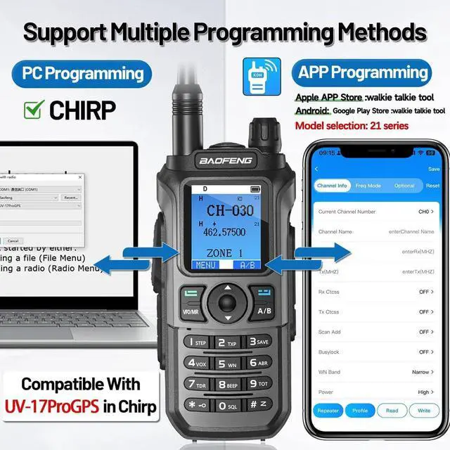 Fast Copy Frequency: You can easily copy the frequency of other walkie talkies to avoid complex frequency programming steps. Support Chirp, choose UV-17ProGPS