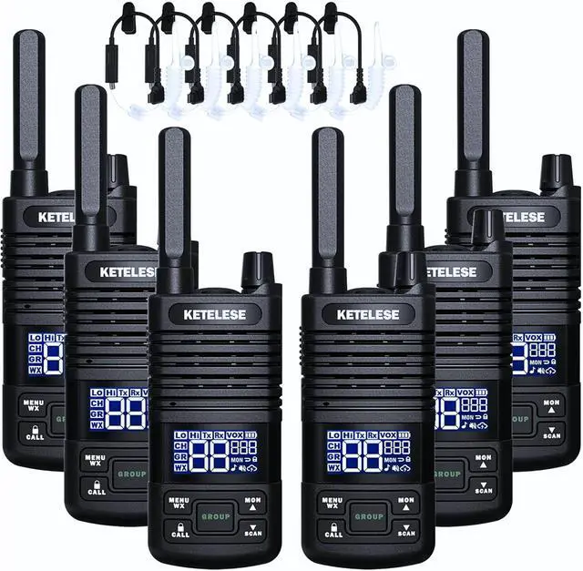 High-Quality After-Sales Service 3-year warranty. Complete accessories include 6 FRS Radios, 6 Earpiece, 6 Li-Polymer Batteries, 3 Dual Port TYPE-C USB Charger Cable, 3 AC Adapter, 1 User Guide. 6-piece set of radio walkie-talkies are also a great communication tool for men, women, kids, and elders to talk with others at home.