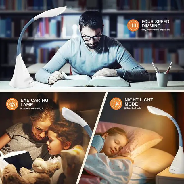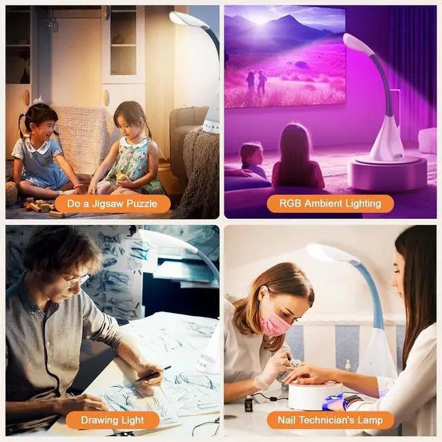 SLEEP NIGHT LIGHTPerfect for home office tasks, bedside reading, children's night light, or architectural accent lighting with sleek white finishour LED desk lamp come with small night light, soft and not harsh warm color light, accompany you to sleep all night, ideal for bedside lamps, table lamps. It's also the ideal nail light nail desk