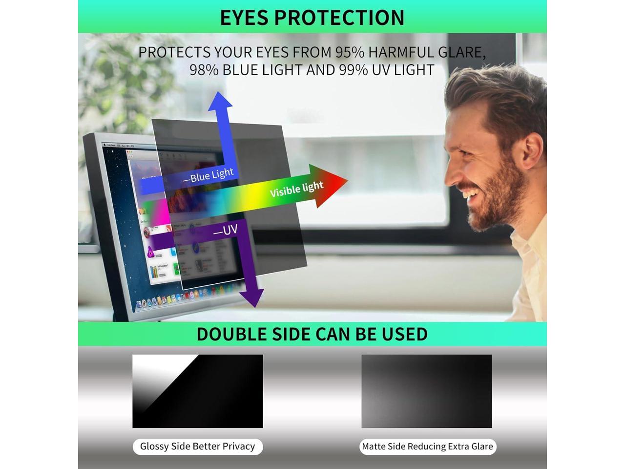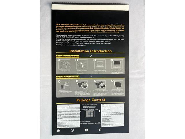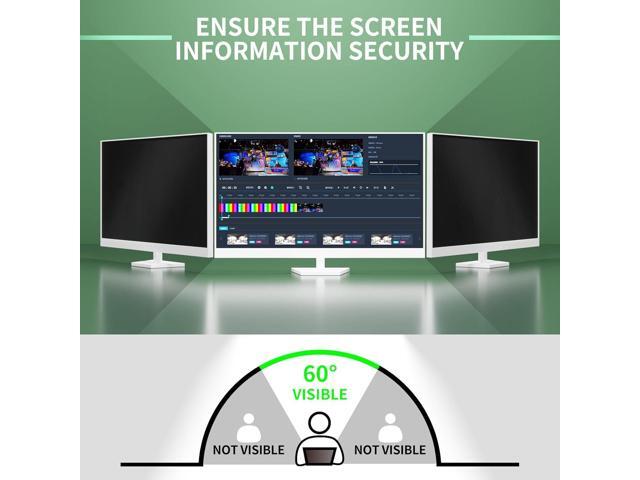- Enhance Privacy SecurityAfter installing the computer privacy screen, the screen has a visible area of 60° on the front, which makes the front of the screen clear. From both sides of the computer (30°-60° angle), it will appear very dark and the screen content cannot be seen. Someone who tries to peek over the side will only see a dark screen! It greatly reduces the risk of prying eyes on personal privacy, stealing or malicious access to your important information!