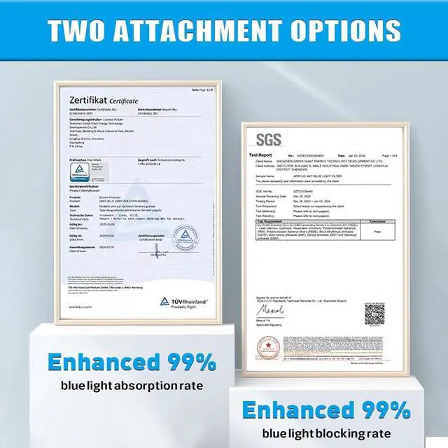 Exposure to too much artificial blue light, especially at night, from electronic devices may lead to poor sleep quality, difficulty falling asleep, and daytime fatigue. How do I reduce the blue light from my digital devices? Our anti-blue light filters block up to 99% of damaging UV and blue light emissions between 300-400nm, and as much as 54% of harmful blue light between 400-470nm.