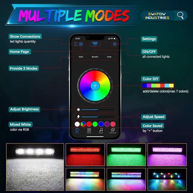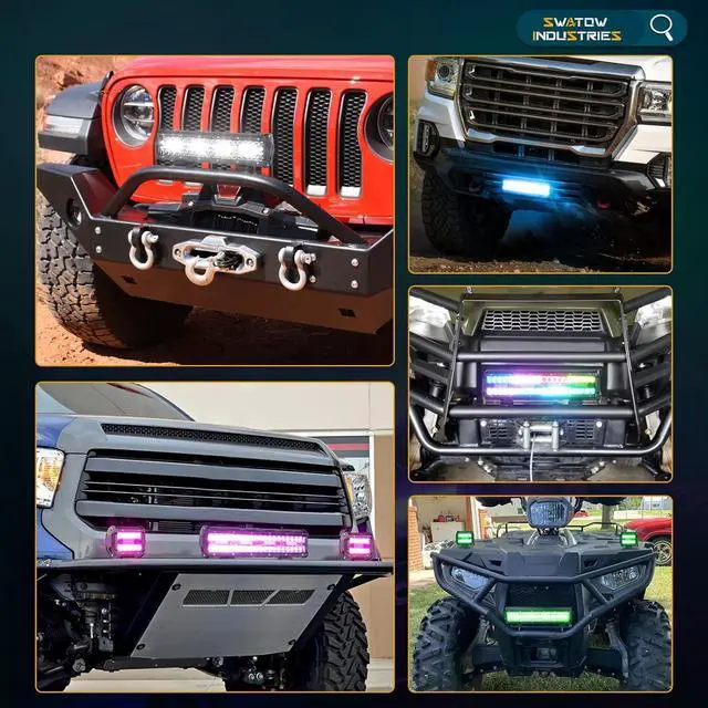 WIDE APPLICATION - The 12 inch rgb light bar fit for any 12V-15V (DC) vehicles. Such as UTV, Polaris RZR, Ranger, General, Can-am, Honda, Yamaha, ATV, SUV, Pickup, Truck, Wrangler, Gladiator, Chevy, Toyota, Ram, GMC, Boat, etc.. Can be install on bumper, bull bar, hood, roof, or any position you want. Perfect as chase lights, warning lights, strobe lights, atmosphere lights and general lighting in the dark. Often used for offroad race, music show, beach feast, fleet parade