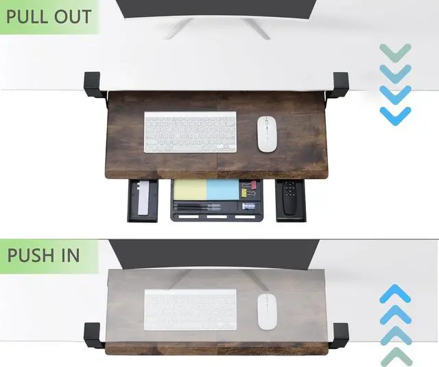 Smooth Gliding Tracks - Retractable smooth sliding rail design allows the desk drawer to glide smoothly forward and backward. It encourages you to keep your arms and wrists in a neutral position and aids in the prevention of injuries caused by poor posture. Simply slide the tray under your desk when not in use and quickly pull it out when you need more space.