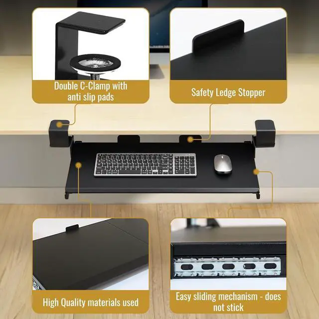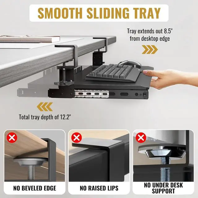 Comfortable Typing Angles: Experience ergonomic typing with our under desk keyboard and mouse tray slide out. This clamp on keyboard tray under desk allows you to easily slide the tray in and out, providing the perfect angle to relieve stress on your wrists and shoulders. The keyboard drawer under desk extends a significant distance from the edge of your desk, ensuring comfortable and efficient use.