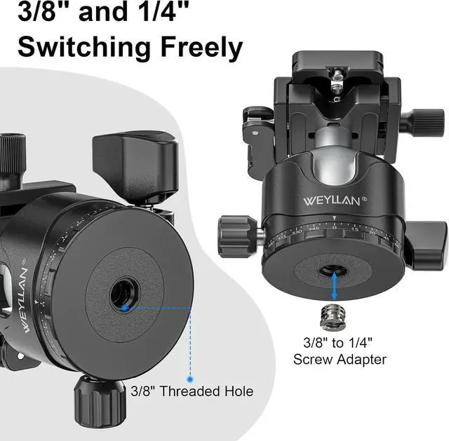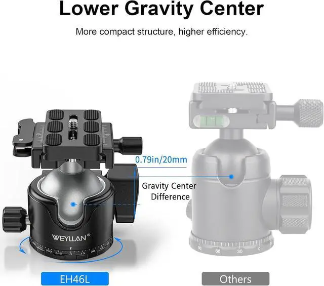 Use EH46L tripod head to achieve various shooting angles, 360-degree rotation shooting, tilt shooting and 90-degree vertical portrait mode shooting. The base is designed with precision scales to help control the rotation angle more accurately.