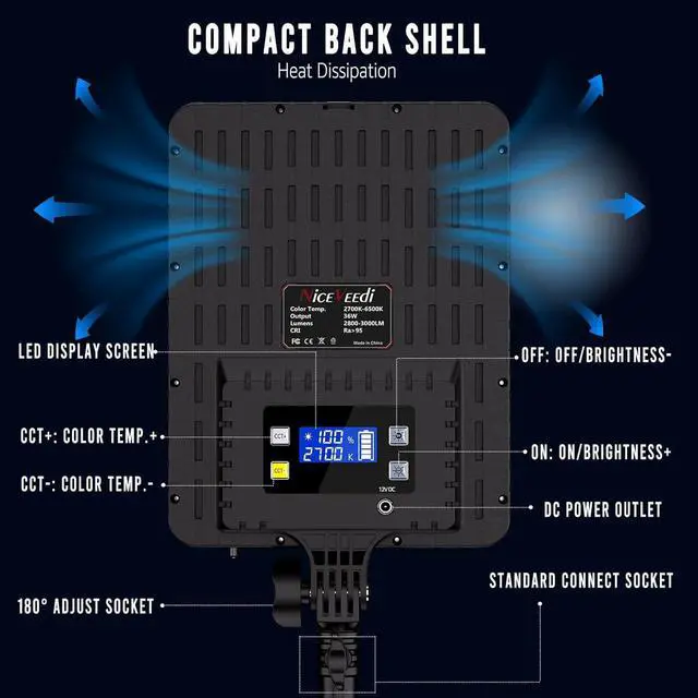 MULTIPLE CONTROL METHODComes with infrared remote control with the LED Video Light which provides more stable connection with the lights, flexible sensing in a distance of 26FT (8 meters). Allow you to set the lighting modes without any bother of elevating the tripod. Also support manual operate the the function button on the back of light panel. You can see the real time lighting parameter on the LED display no matter operate manually or with the remote control.