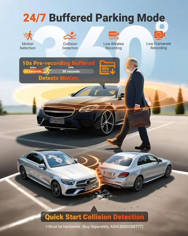[ Next-gen 2.5K Rear Camera ] Featuring a premium IMX675 sensor with HDR processing, our 2.5K rear camera delivers 1.5X sharper footage than standard 1080P systemsproviding critical evidence in rear-end collision scenarios. The exclusive rear cabin camera with IMX662 sensor offers enhanced light sensitivity, capturing clear details throughout the trunk, back seat, and side windowsperfect for monitoring children, pets, and valuable cargo.