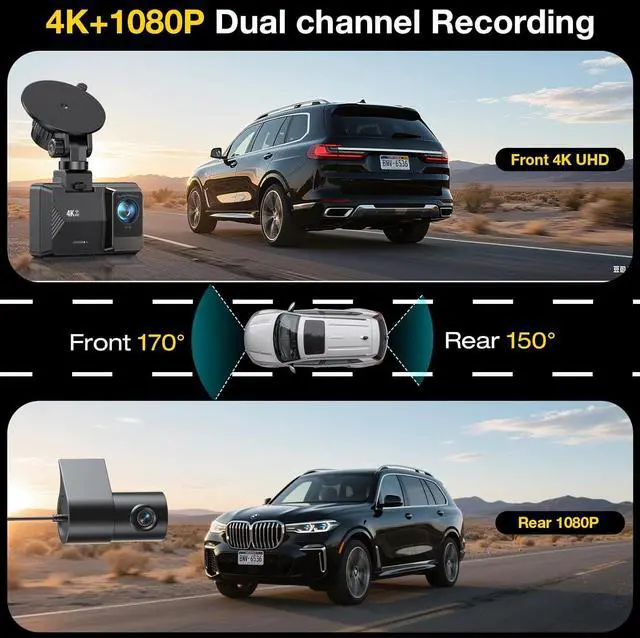 Loop Recording & Built-in G-SensorThis dash cam front and rear supports seamless loop recording. When the 64GB card (included ) fills, The dashcams will overwrite the oldest files. Equipped With a built-in G-sensor that detects sudden movements or impacts, it automatically locks and protects the associated footage when an event is detected on the road, ensuring it won't be overwritten during loop recording.
