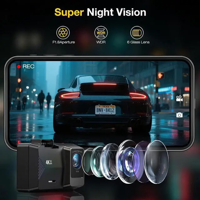 Superior Night Vision&WDR TechnologyOur dash cams provides night vision, dash cam's 6-layer F 1.8 aperture lens and HDR/WDR technology, which let you capture important details clearly even in low.
