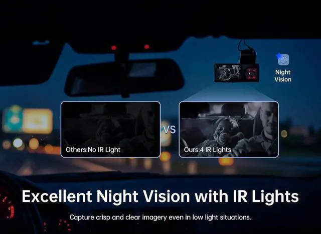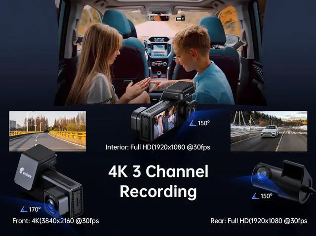 [64GB Memory card] This dash cam front and inside includs a 64GB memory card, no need to purchase a memory card separately. Compared with a 32GB memory card, this 64GB card provides longer recording time. This 4K car dash camera supports memory cards up to 256G