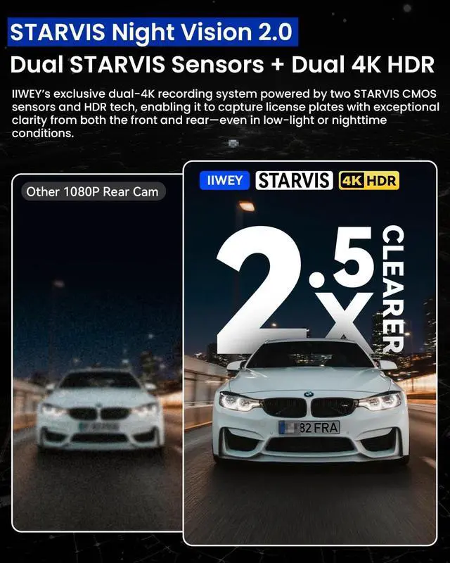 Dual STARVIS + HDR Night Vision2nd-gen STARVIS sensors with f/ 1.6 lenses on both 4K cams gather more light, dual-channel HDR reduces glare and keeps details visible even in low-light and night scenes.