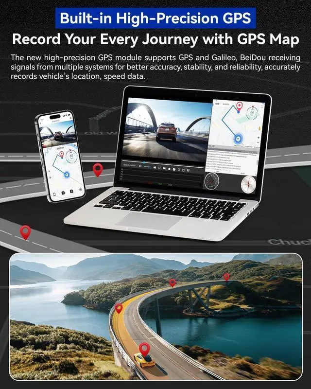 128GB Card Included / Loop & LockReady to use with a 128GB microSD. Loop recording overwrites the oldest files, while the G-sensor auto-locks impact footage to a protected folder for evidence.